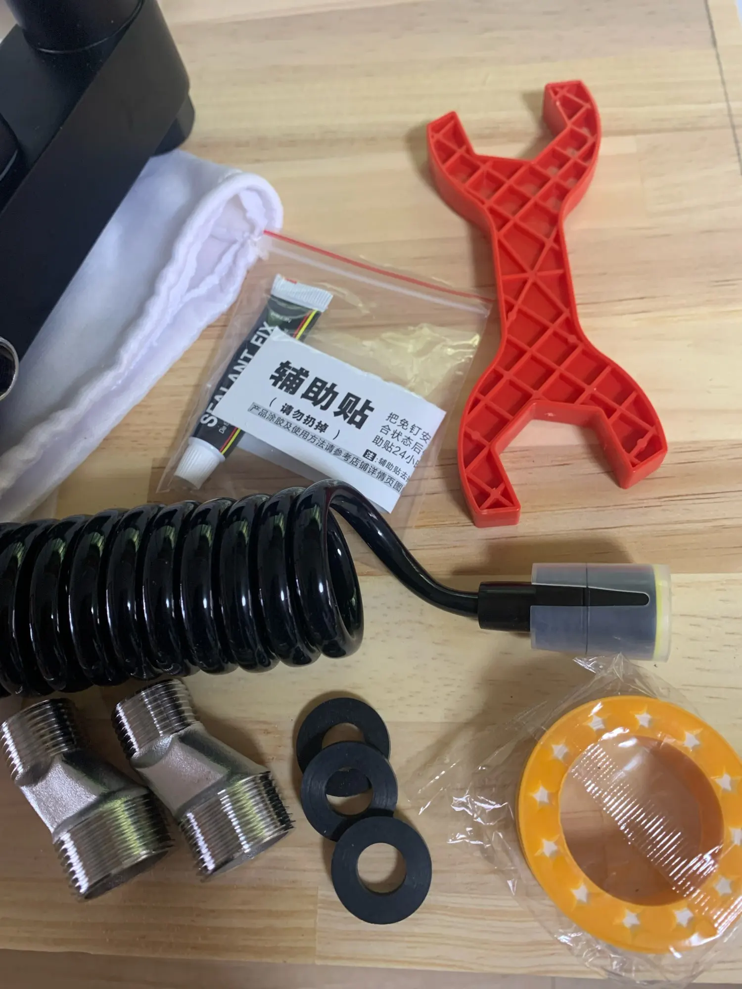 Model D1: All copper body mop pool faucet (5 years warranty) + 2m telephone cord hose + all copper button pressurized spray gun